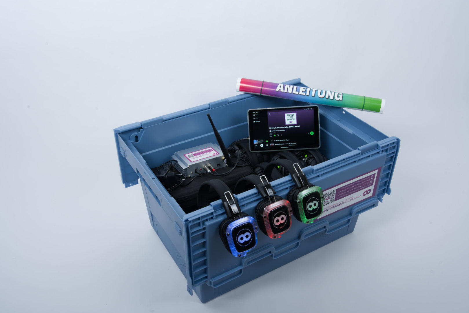 Eine Silent Disco Partybox beinhaltet: